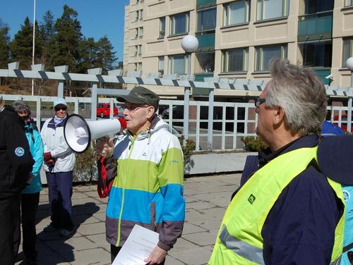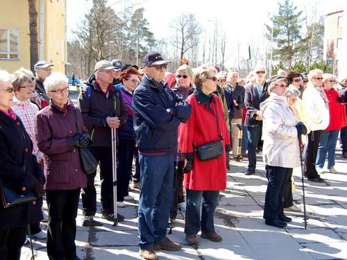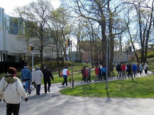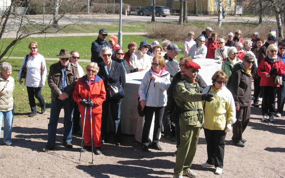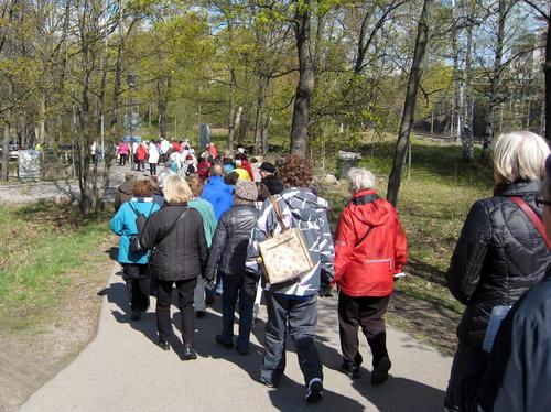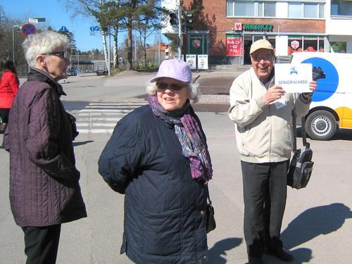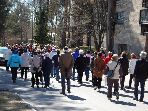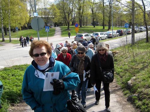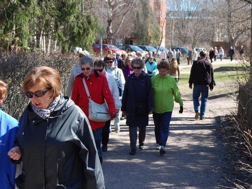 Tämän kevään seniorikävelyn järjestelyistä vastasi Keski-Helsingin Seniorit ry ja se toteutettiin kierroksella Töölönlahden ympäri. Kävely aloitettiin Helsingin Kaupunginteatterin edestä päättyen ravintola Kaisaniemeen, jossa nautittiin piirin tarjoamat kahvit ja voileivät. Kävelyn oppaana toimi seniori Väinö Kukkola, minkä lisäksi osanottajille jaettiin erinomainen esite kävelylenkin varrella olevista nähtävyyksistä. Kävelyyn osallistui noin 160 senioria.